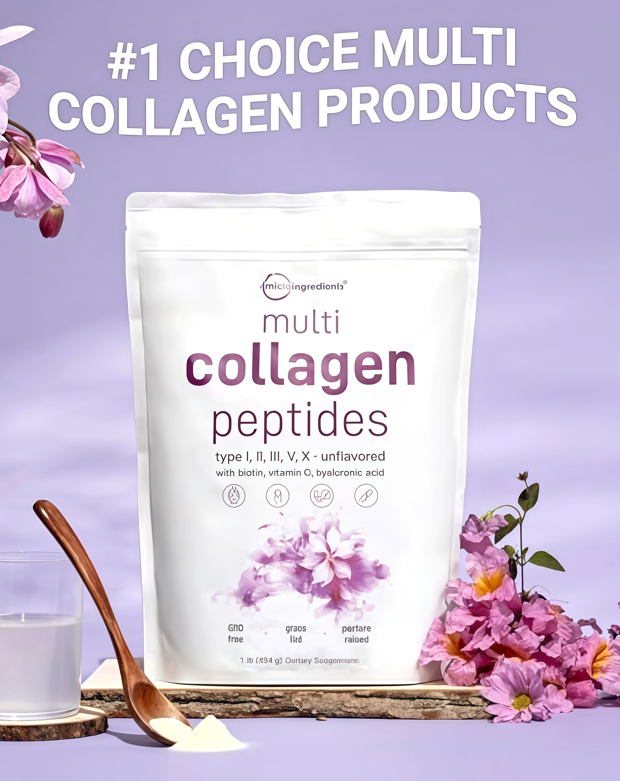 Micro Ingredients Multi Collagen Peptides Powder - Hydrolyzed Protein Peptides