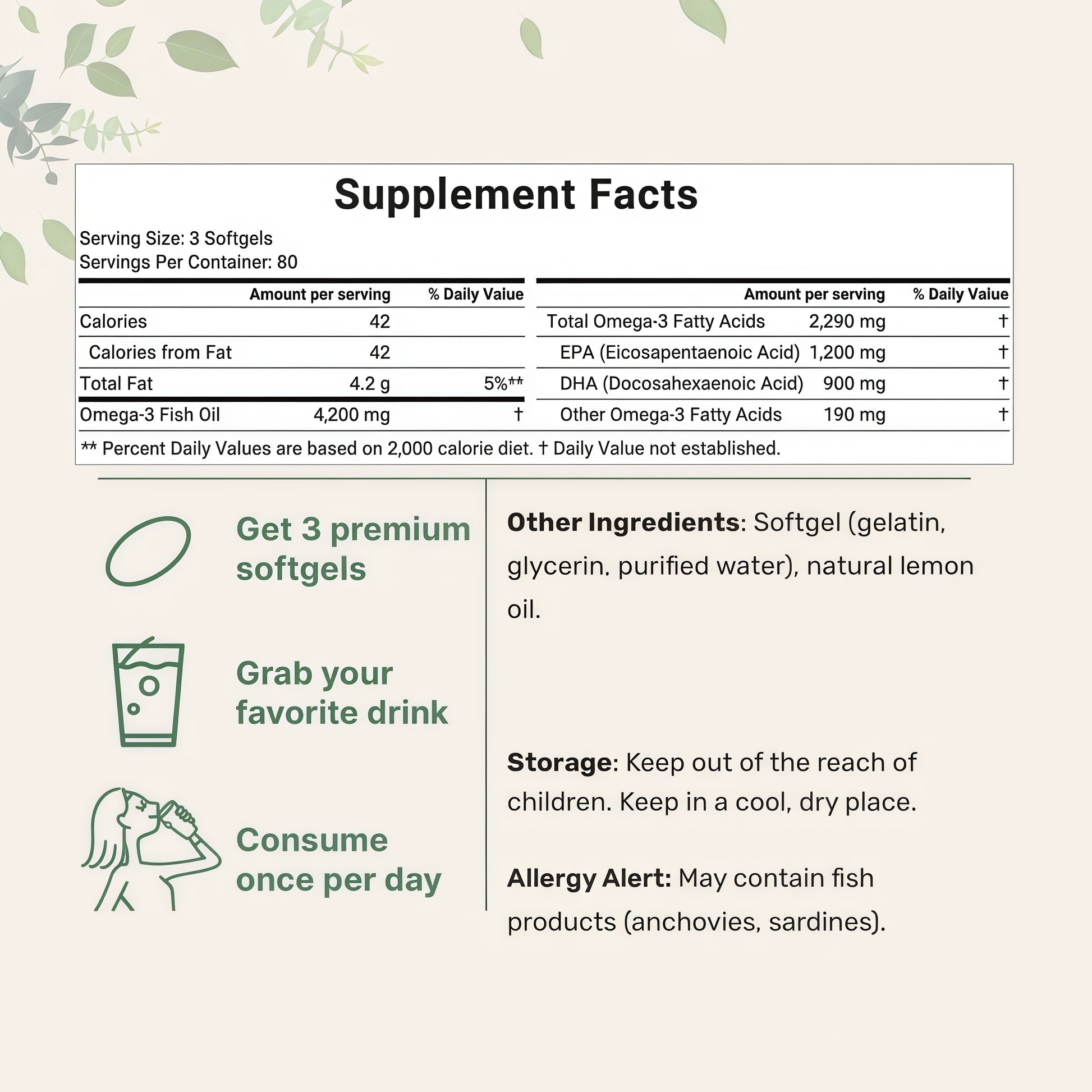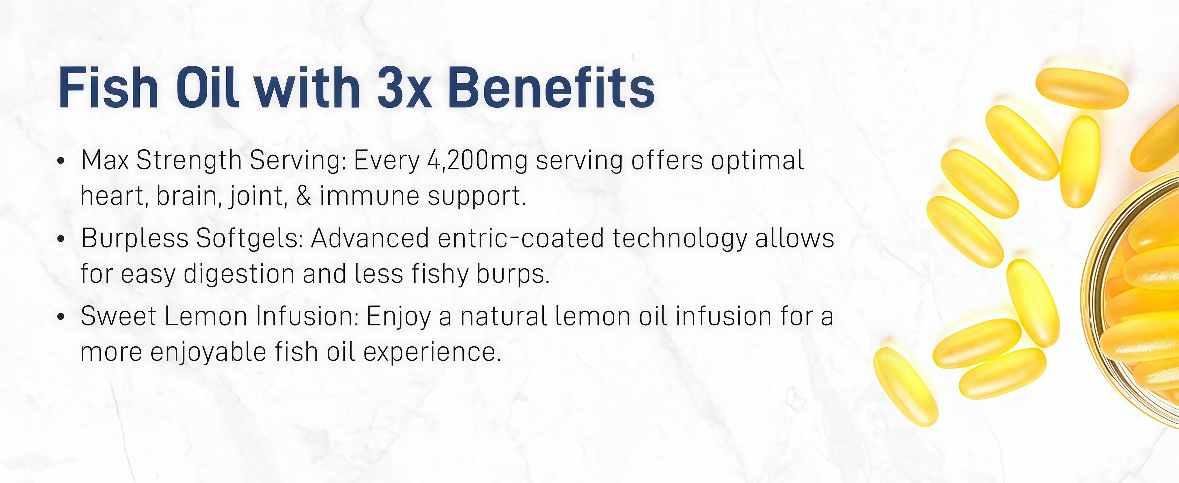 - No Fishy Burps: Enteric-coated technology and natural lemon flavor and designed for burpless intake and less fishy aftertaste.